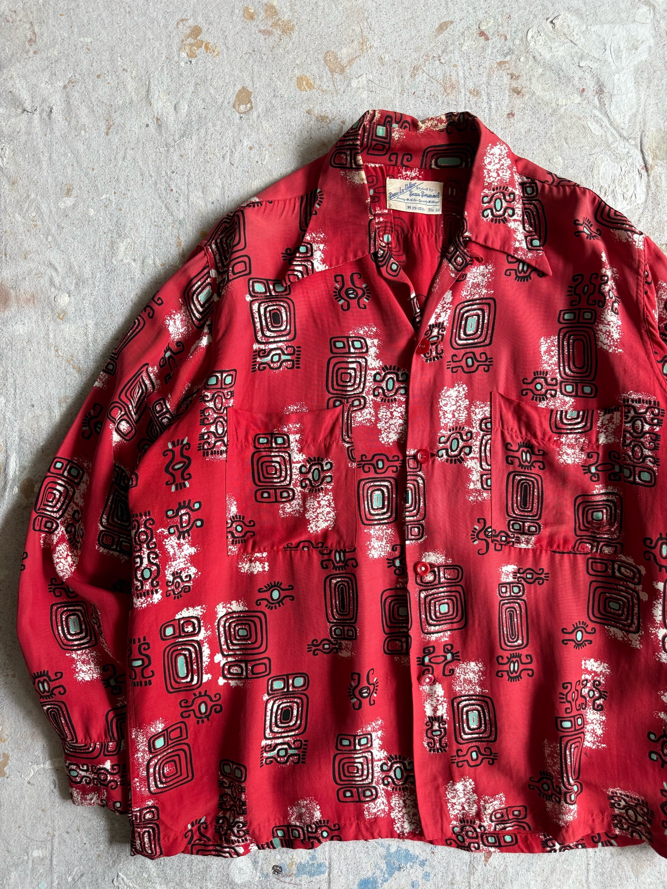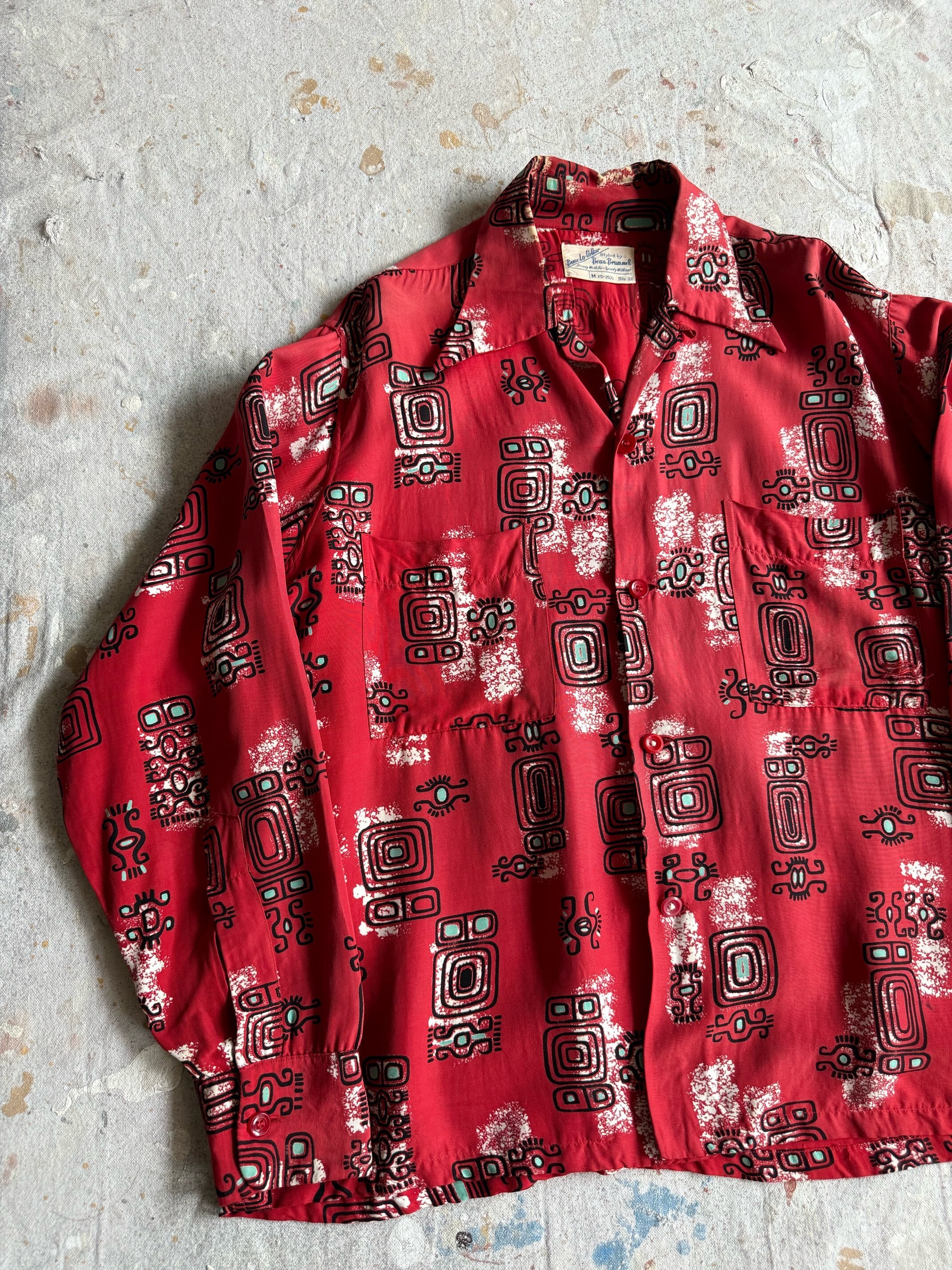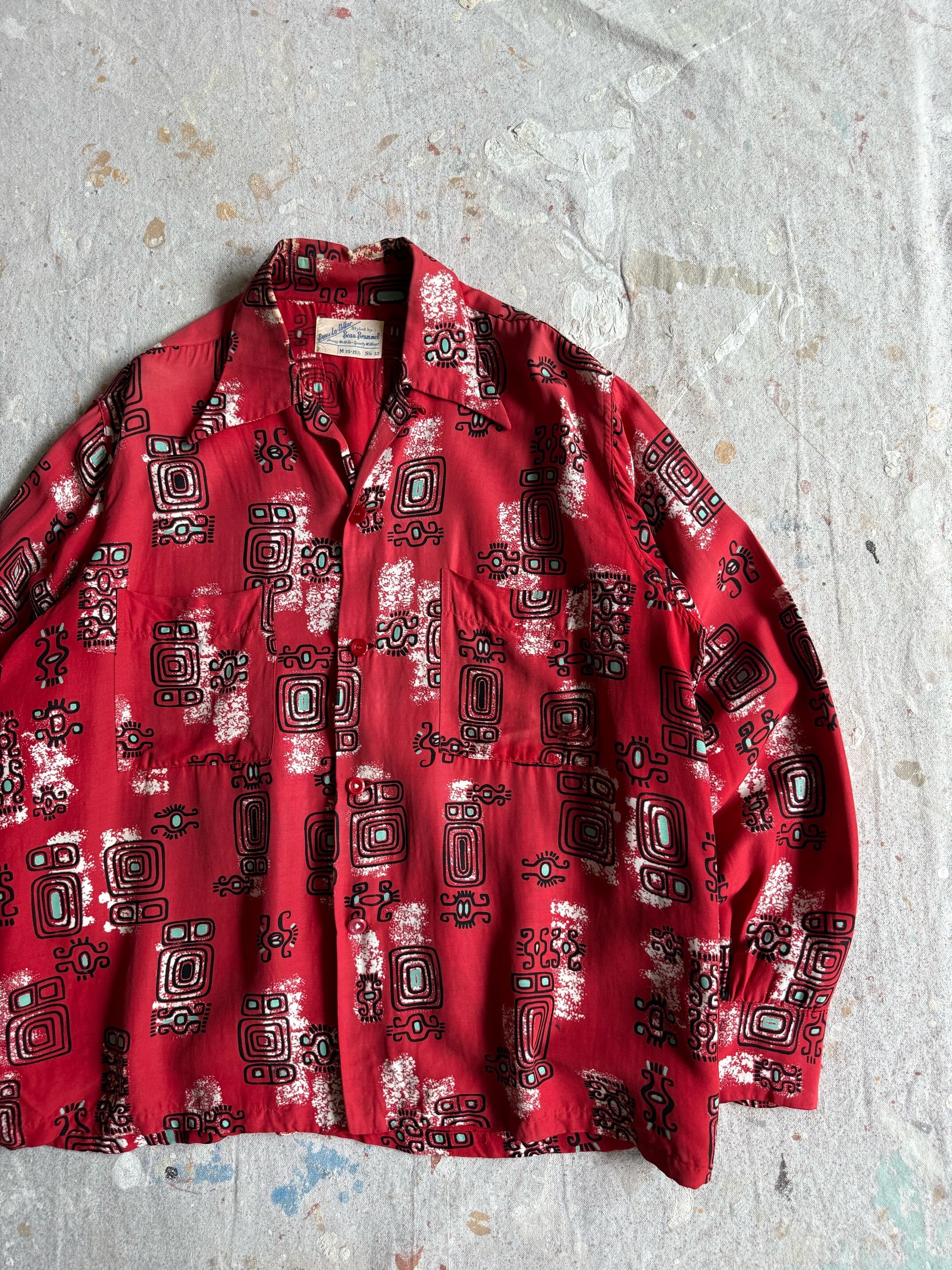 1940~50s BEAU BRUMMEL Rayon Shirts M Z99