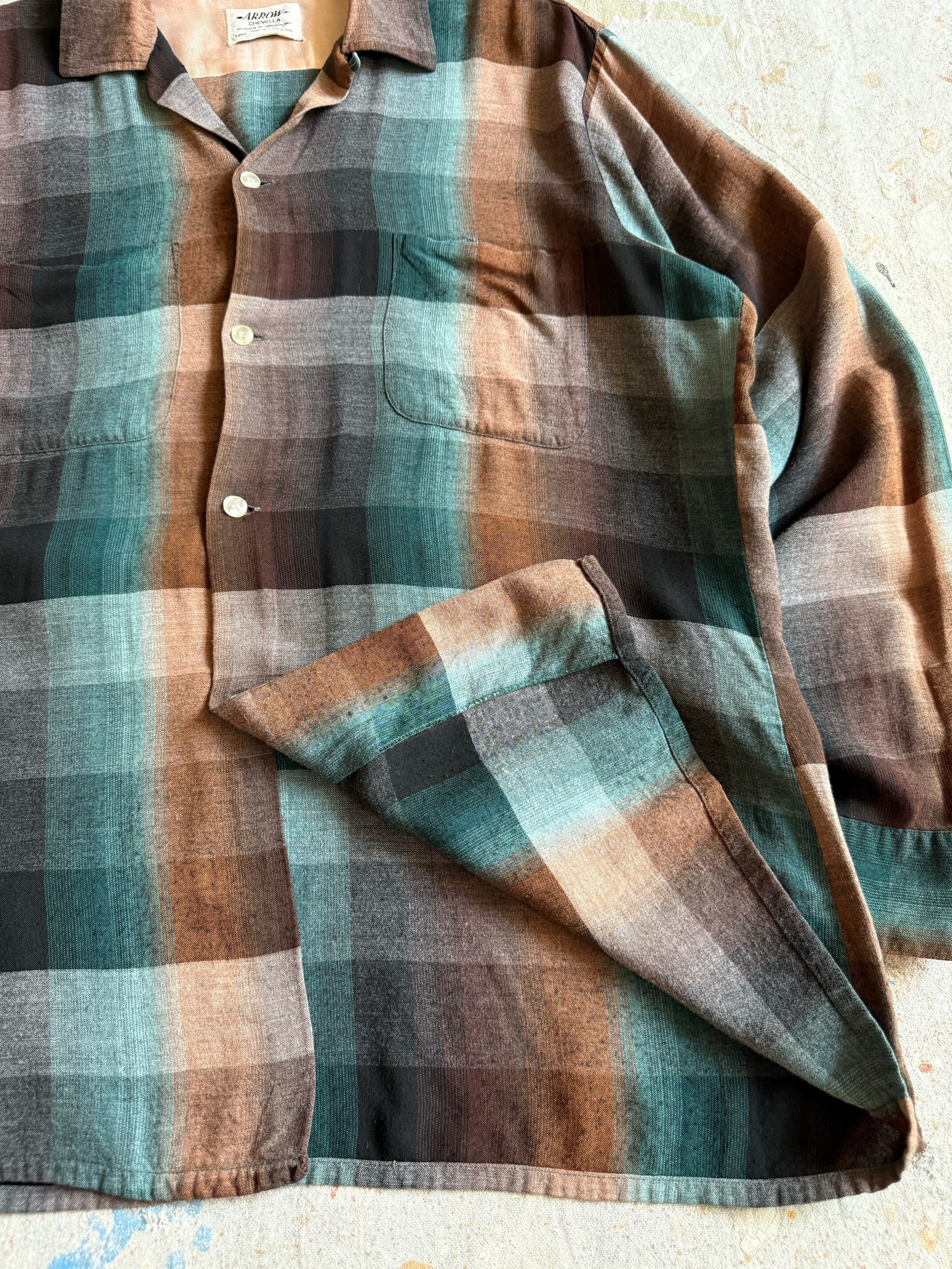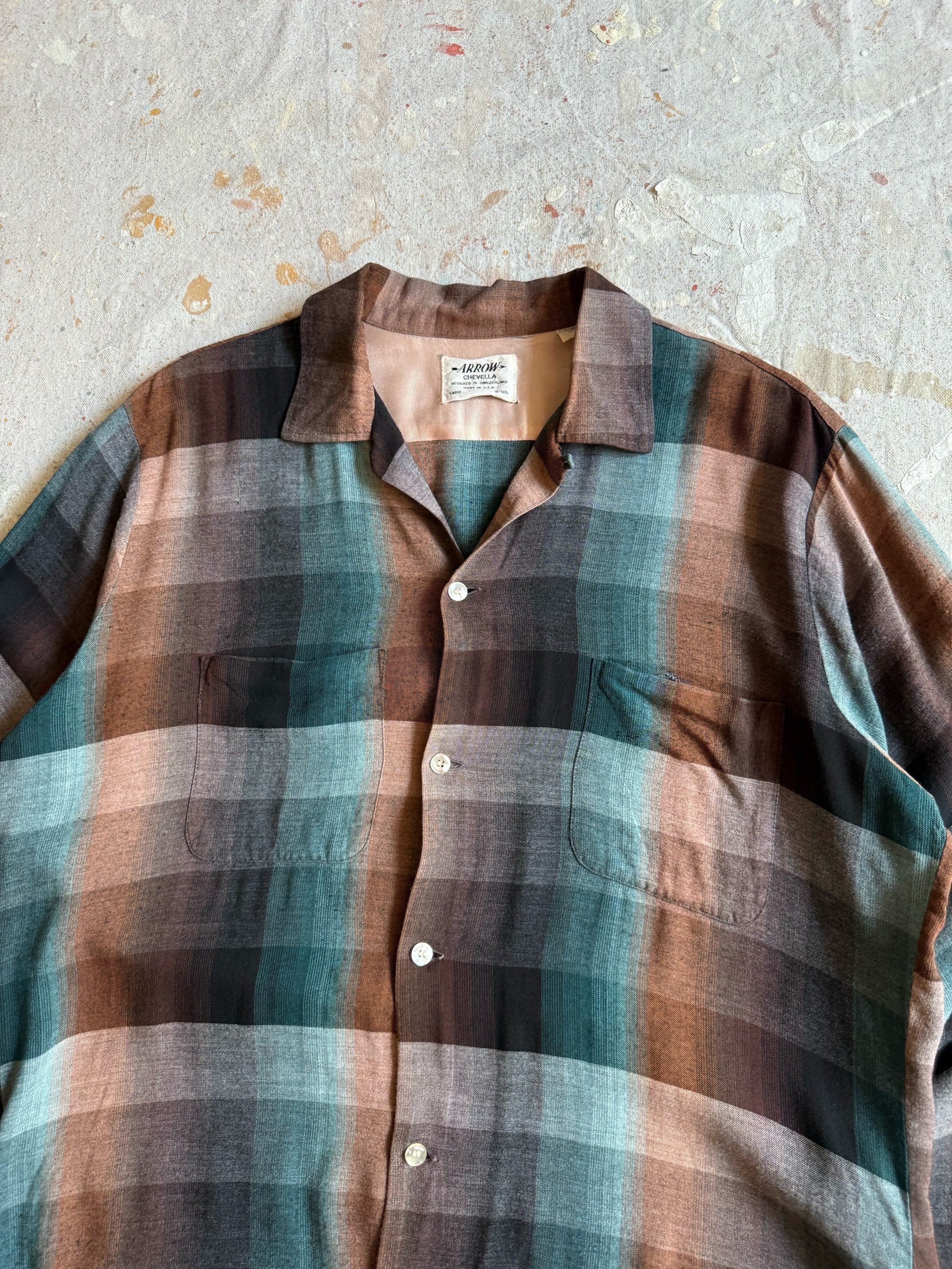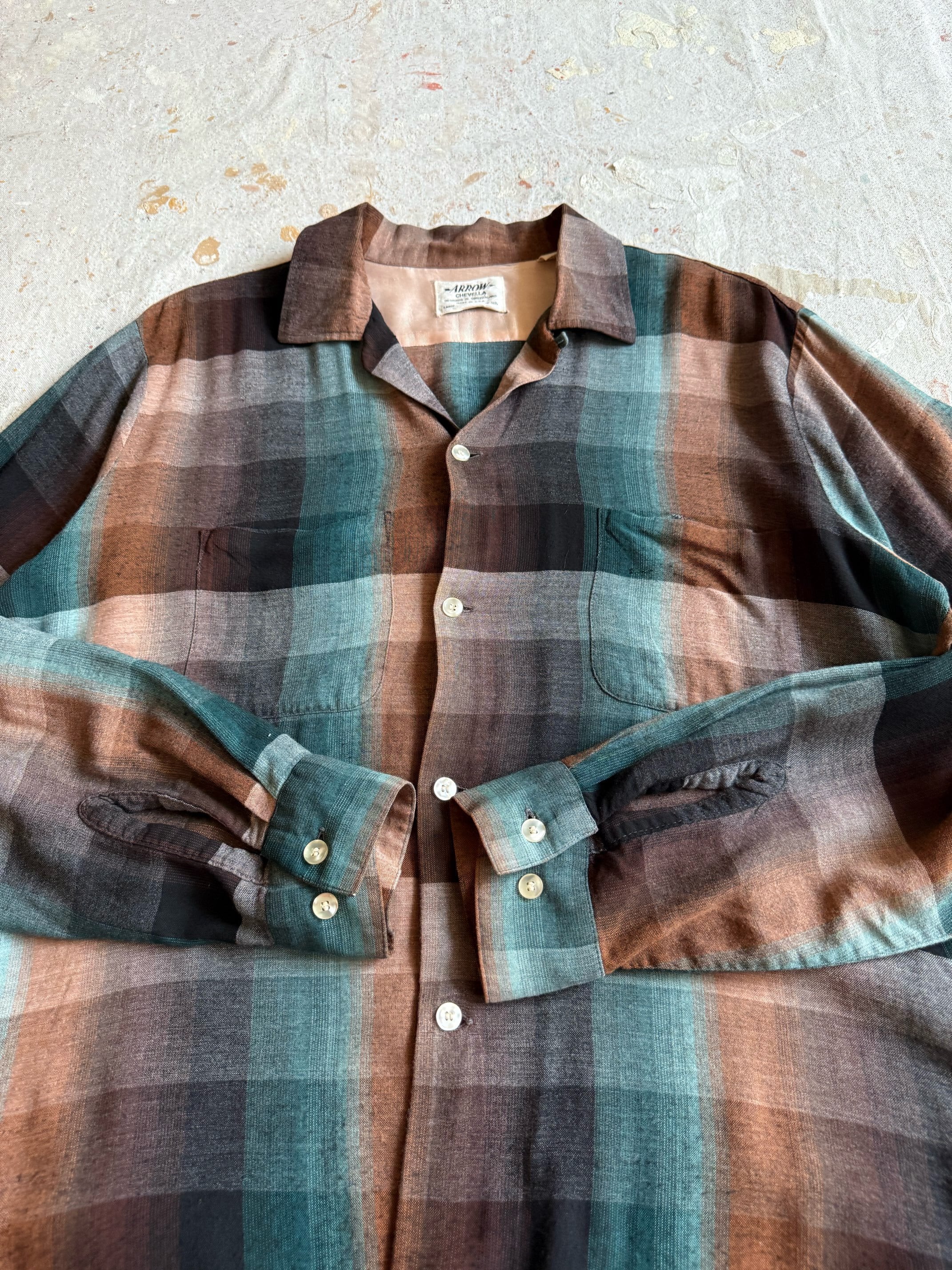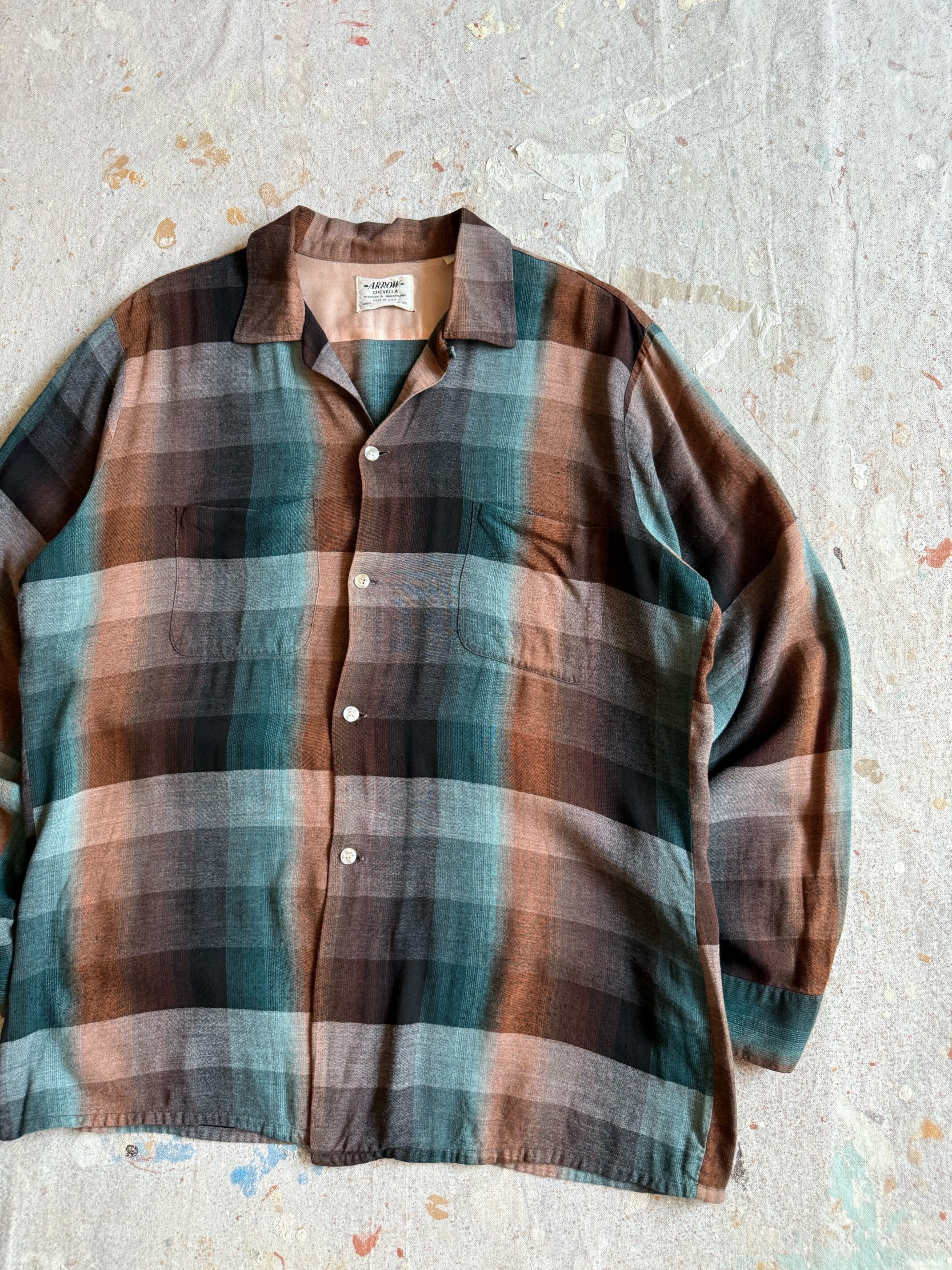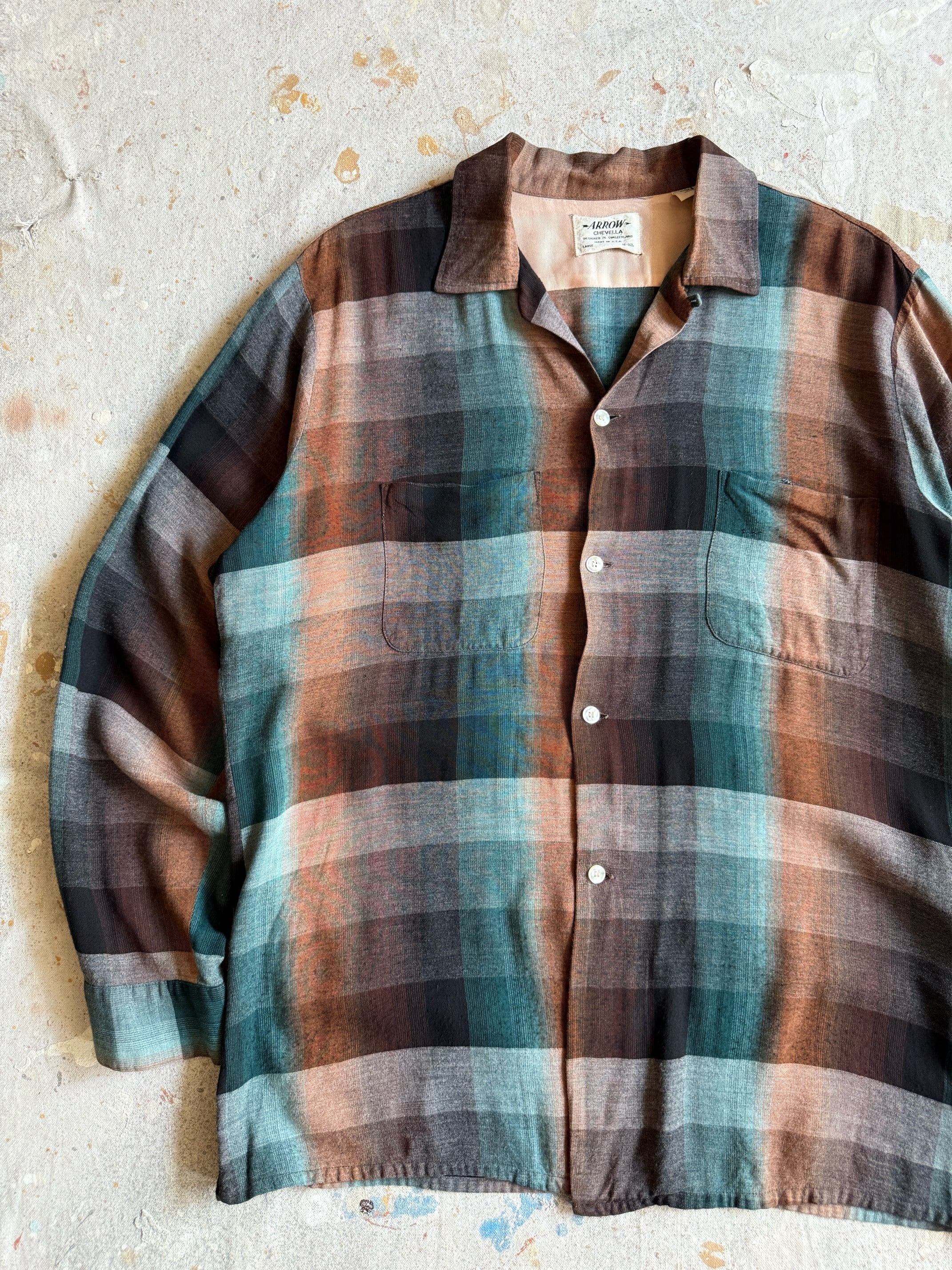 1950s ARROW Rayon Shirts L オンブレ Z212